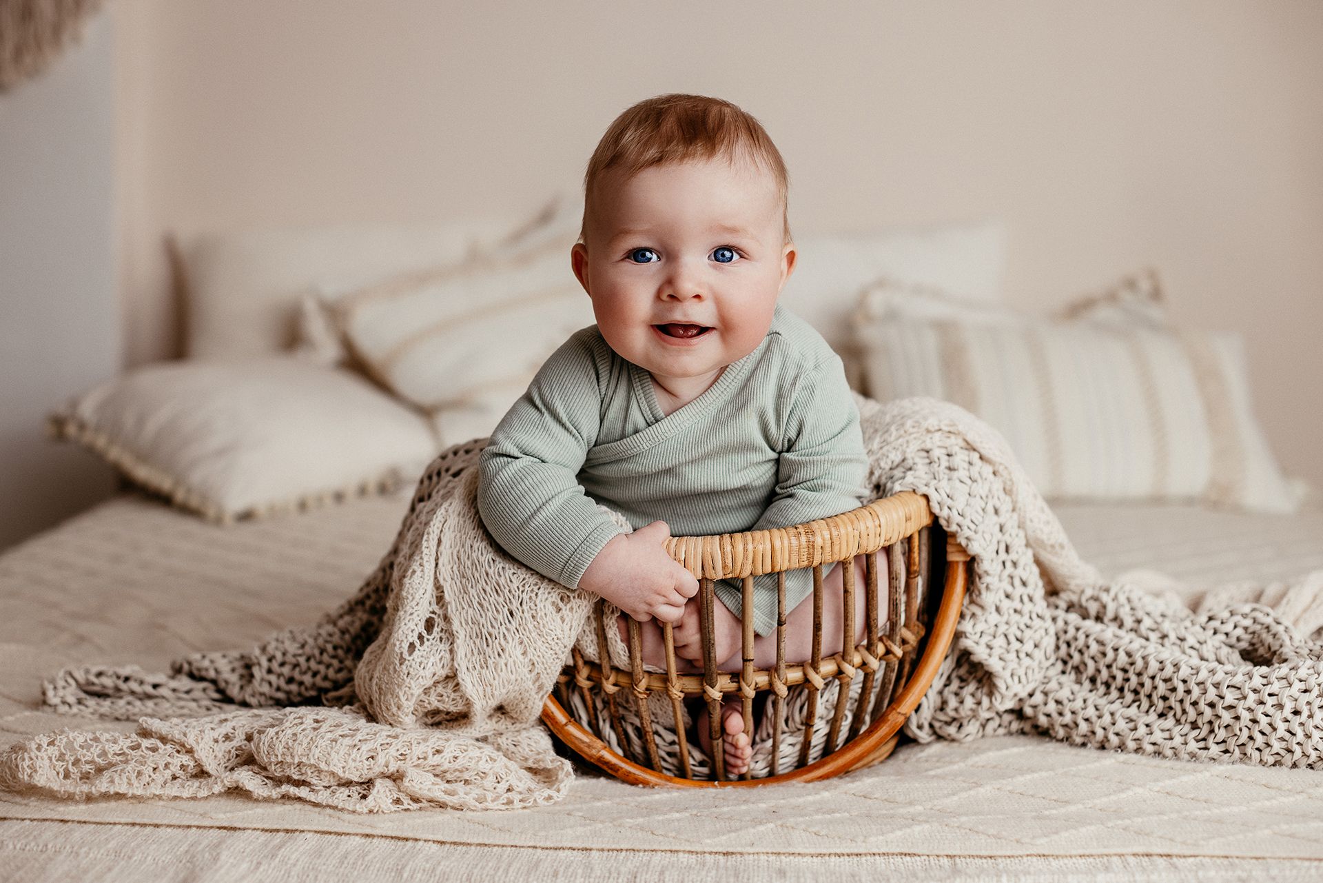 Auch im Laufe des ersten Jahres können wir jederzeit wunderschöne Bilder machen, um die einzigartigen Veränderungen eures Babys festzuhalten. Vom ersten zarten Lächeln bis hin zu den ersten wackeligen Schritten – gerade in den ersten Monaten entwickeln sich eure Babys rasant und jedes Alter bietet wundervolle Möglichkeiten für unvergessliche Erinnerungsbilder.